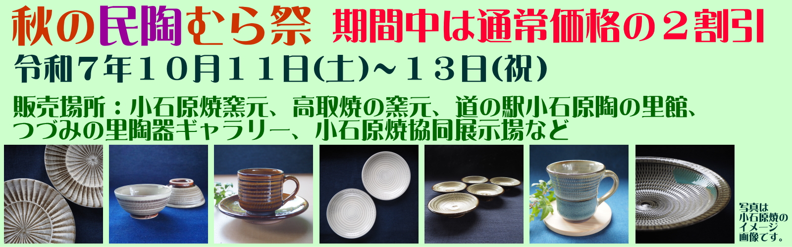 2022年11月13日開催予定の第10回、小石原手仕事市に出店いただける手仕事作家を随時募集しています。会場の小石原焼伝統産業会館駐車場に大型テントを設営予定です。